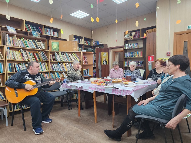 Завершился вечер по-семейному уютно: гости и участники собрались за общим столом на душевное чаепитие. Пение любимых песен под аккомпанемент баяна продолжилось, создав ту самую тёплую атмосферу, где стираются границы между возрастами.