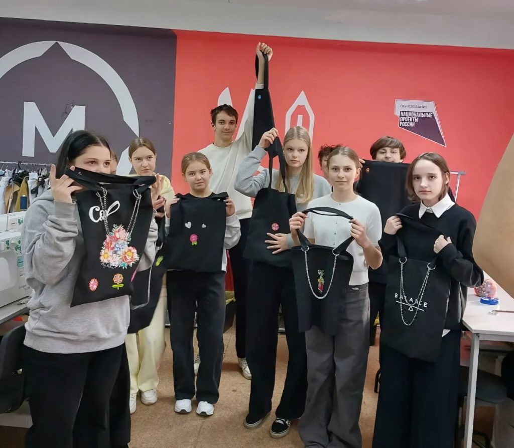 Кульминацией пробы стало самостоятельное изготовление сумок‑шоперов. Каждый участник смог пройти полный цикл: от раскроя материала до финальной строчки. С гордостью за собственные достижения школьники забрали готовые изделия с собой — как памятный результат первого профессионального опыта.