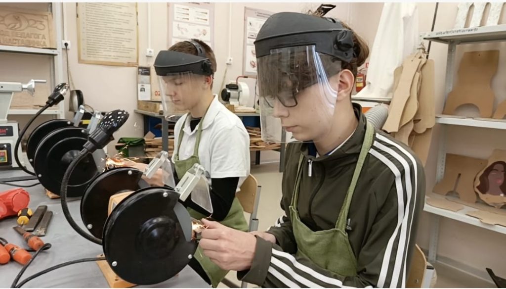 В начале занятия преподаватель провёл обязательный инструктаж по технике безопасности. Ученики внимательно изучили правила работы в мастерской и требования к безопасному использованию заточного станка.