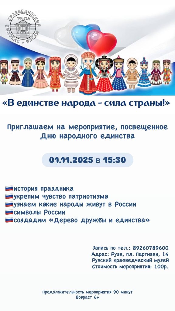 1 ноября в Рузском краеведческом музее состоится мероприятие, посвященное Дню народного единства.