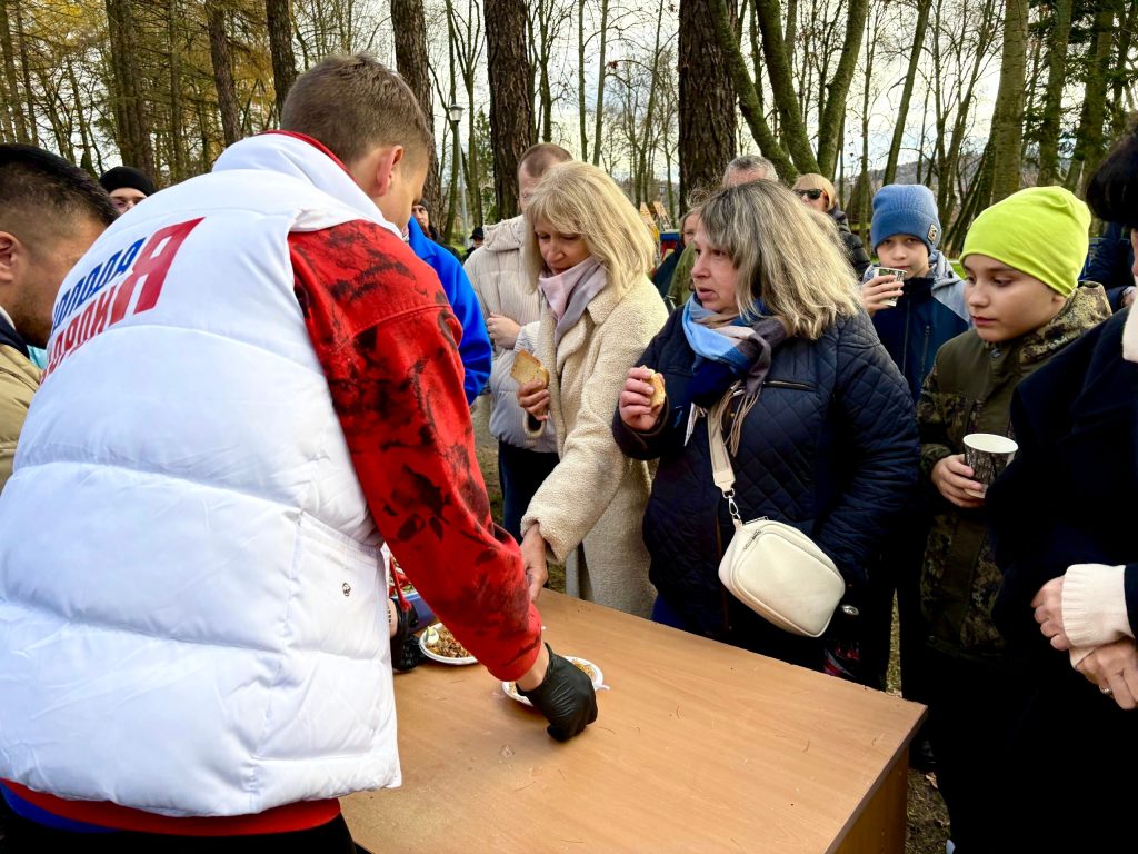 В рамках мероприятия «Россия. Родина. Единство» активисты местного отделения «Молодой гвардии» совместно с руководителем Ассоциации ветеранов СВО Подмосковья по Рузскому муниципальному округу раздавали угощения для посетителей парка культуры и отдыха «Городок».