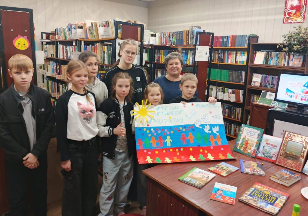 Сотрудница Сытьковской сельской библиотеки Рузского муниципального округа провела ко Дню народного единства патриотический час «Вместе мы – Россия!» для ребят из семейного центра «Созвездие».