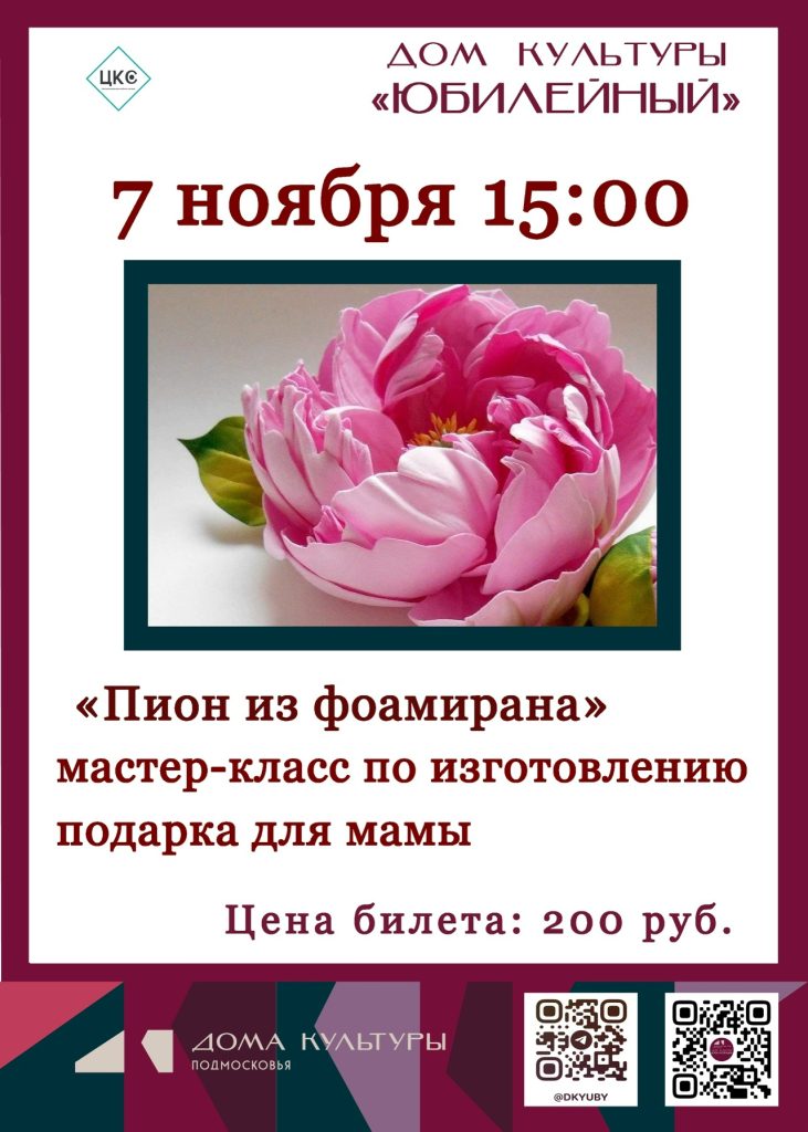 Мастер-класс «Пион из фоамирана» в ДК «Юбилейный»: сделайте подарок для любимой мамочки своими руками