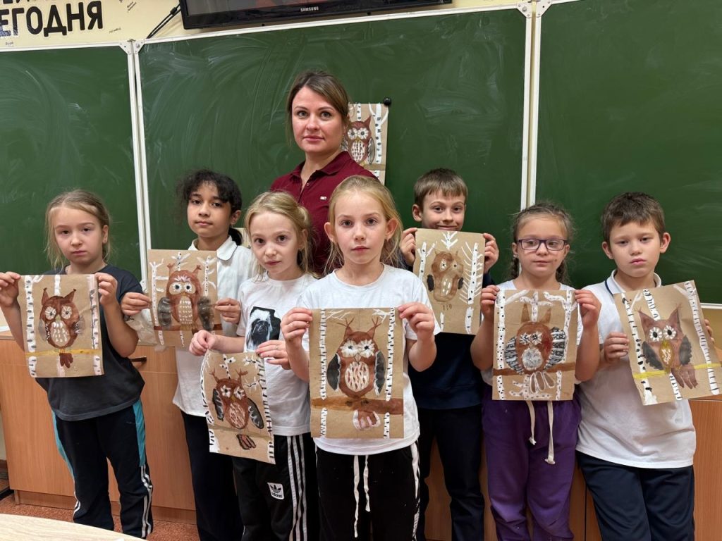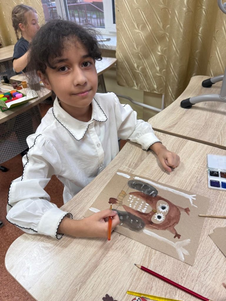 Дети рисовали сову, используя интересные методы, которым научила Оксана Игоревна. Работы получились красивыми и яркими.