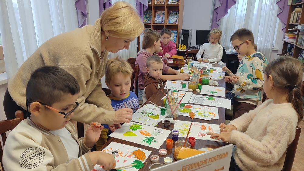 На занятии школьники учились не просто рисовать осень, а творить вместе с ней. Брали листья разной формы и размера, наносили на них гуашь, создавая собственные палитры – от классических осенних до самых фантазийных. Аккуратно перевернув лист, прижимали его к бумаге, и вот он – момент волшебства! На белом листе оставался не просто след, а сложный узор с прожилками – уникальный и неповторимый.