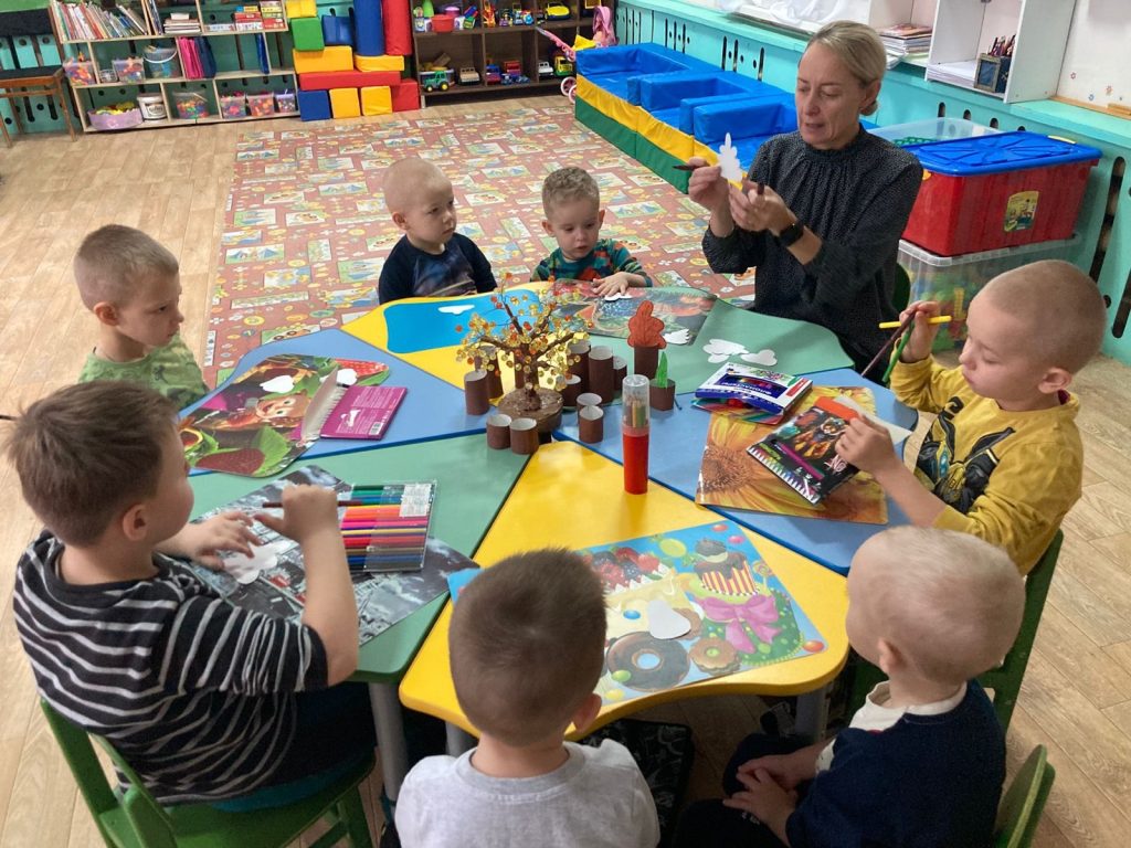 Творческий процесс включал в себя не только рисование, но и работу с различными материалами. Дети учились комбинировать техники, создавая объёмные элементы осеннего леса при помощи картонных втулок.
