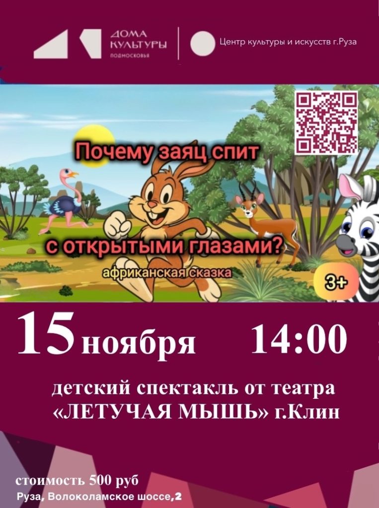 ЦКиИ Рузы приглашает на спектакль «Почему заяц спит с открытыми глазами?»