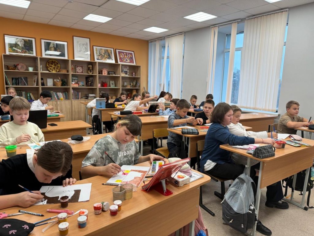 В рамках благотворительной акции «Твори добро» Оксана Водяникова провела увлекательный мастер-класс по изобразительному искусству для учеников Дороховской школы.
