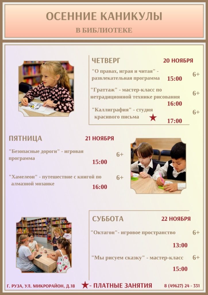 Осенние каникулы уже начались, и Рузская центральная библиотека приглашает вас провести это время весело и интересно!