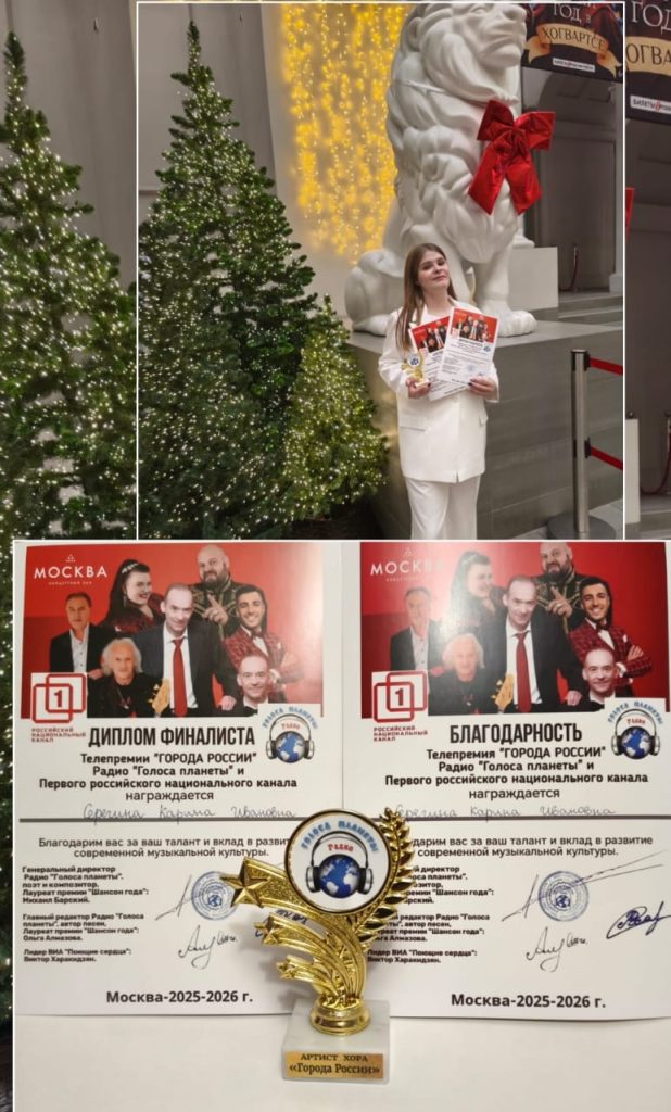 Поздравляем Карину с высокими результатами и желаем, чтобы её голос всегда приносил радость и вдохновение всем вокруг. Пусть новые награды станут началом большого пути, а неиссякаемая энергия и вдохновение сопутствуют ей во всех начинаниях!