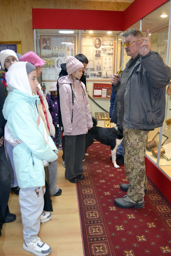Член Совета ветеранов ОМВД России «Рузский» майор милиции в отставке Михаил Пронин провел экскурсию в музее истории Рузской милиции для воспитанников Центра помощи семье и детям «Cозвездие».