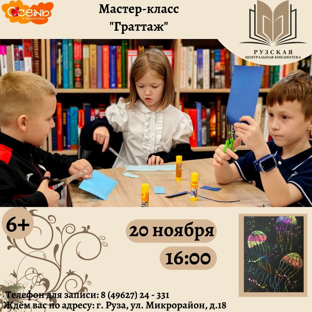 Рузская центральная библиотека приглашает на мастер-класс «Граттаж», который пройдет 20 ноября в 16:00.