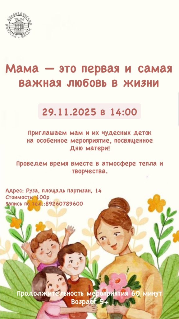 29 ноября Рузский краеведческий музей приглашает на мероприятие, посвященное Дню матери.
