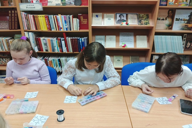 В Рузской городской библиотеке для детей состоялся увлекательный мастер-класс по бисероплетению под названием «Мозаика из бисера». Это мероприятие было посвящено одному из сложных видов этого искусства — мозаичному плетению.