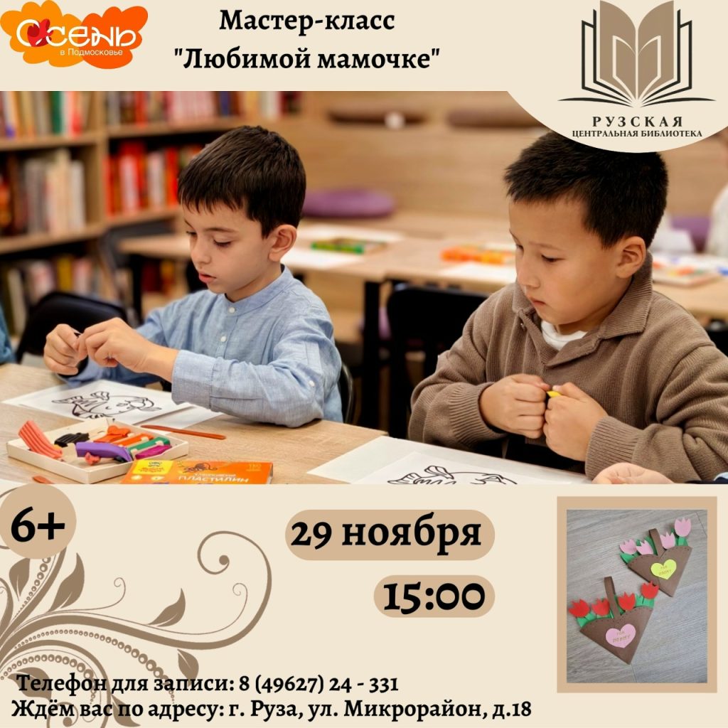29 ноября Рузская центральная библиотека приглашает в творческую мастерскую «Фабрика идей» на мастер-класс «Любимой мамочке», приуроченный ко дню Матери.