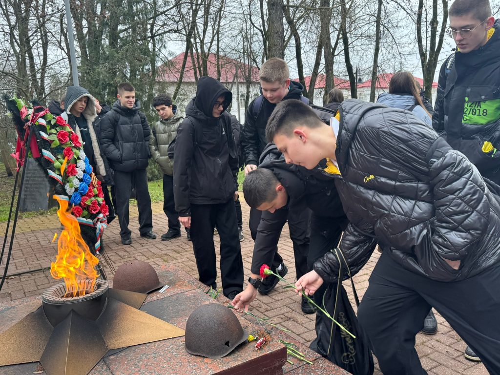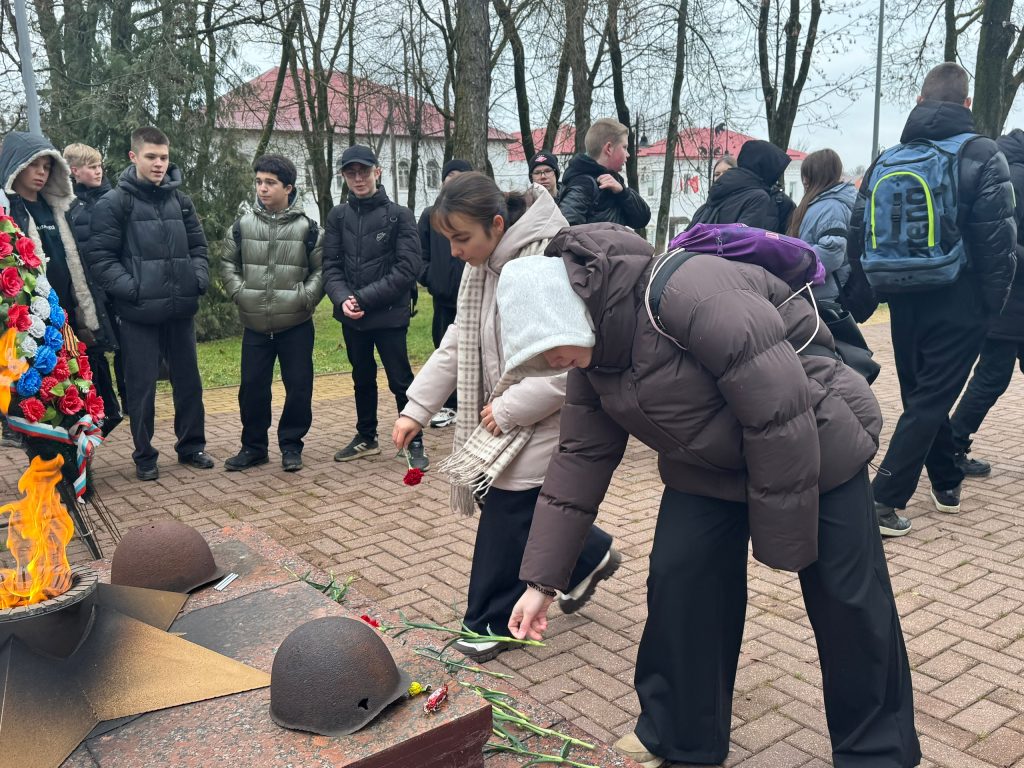 Школьники возложили цветы к Вечному огню — символу неугасающей памяти о тех, кто отдал жизнь за Родину, чьи имена остались неизвестными.
