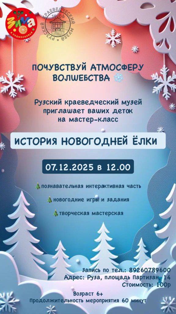 Запись — по телефону 8 (926) 078-96-00. Стоимость программы — 100 рублей.