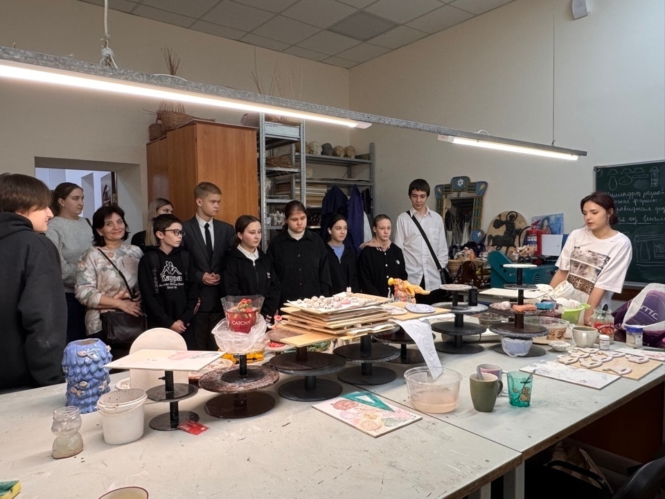 Ребята ознакомились с учебными аудиториями, мастерскими и творческими пространствами филиала, увидели, как проходит учебный процесс, и погрузились в атмосферу творчества и профессионального мастерства.