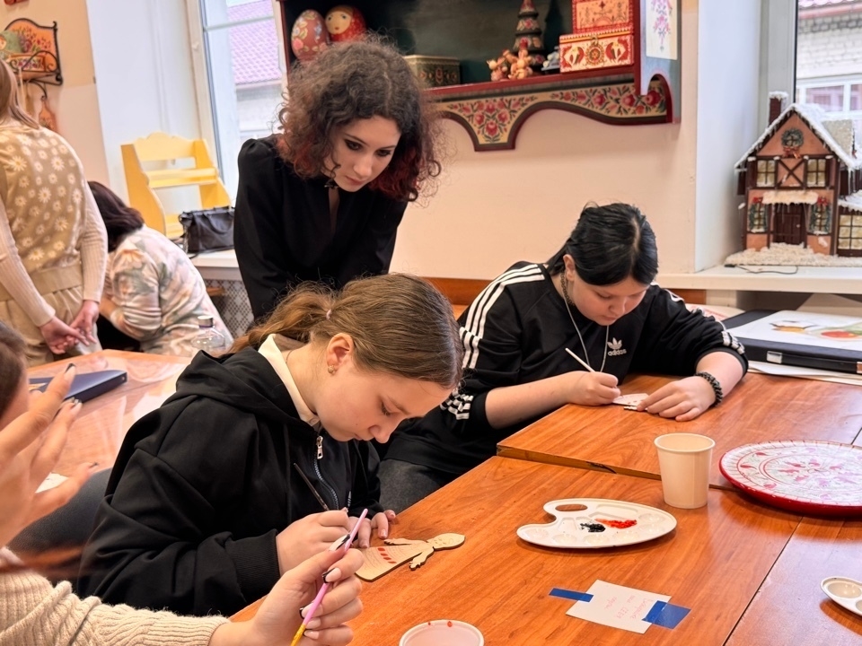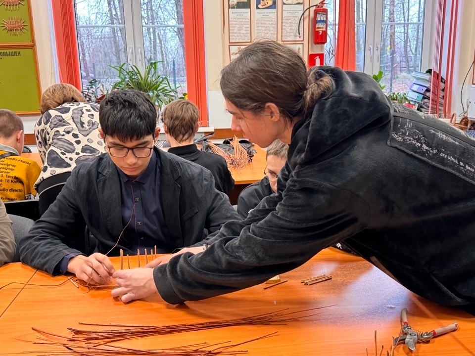 Под чутким руководством преподавателей и студентов для ребят провели мастер-классы, где они смогли попробовать свои силы в различных видах искусства, таких как лозоплетение и художественная роспись по дереву.