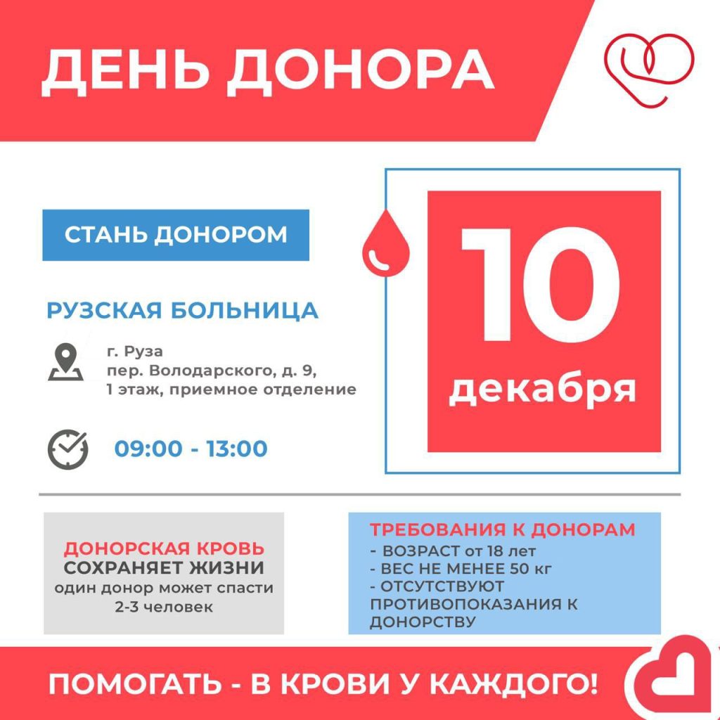 10 декабря с 9 до 13 часов в стационаре Рузы пройдет День донора. Глава Рузского муниципального округа, секретарь местного отделения партии «Единая Россия» Александр Горбылёв разместил в своём Телеграмм-канале инструкцию, как подготовиться к донации.