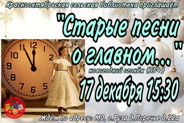 Краснооктябрьская библиотека приглашает на теплую встречу «Старые песни о главном…», посвященную празднованию Нового года и Дня энергетика, 17 декабря в 15.30.