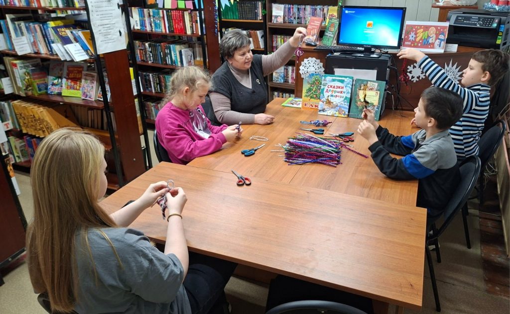 Под руководством библиотекаря ребята своими руками мастерили волшебные, блестящие фонарики из синельной проволоки. Этот материал отличается разнообразием цветов — от красного и белого до золотистого и серебристого, а также встречаются двухцветные и трёхцветные варианты. Мальчики и девочки с большим интересом и увлечением создавали свои новогодние игрушки.