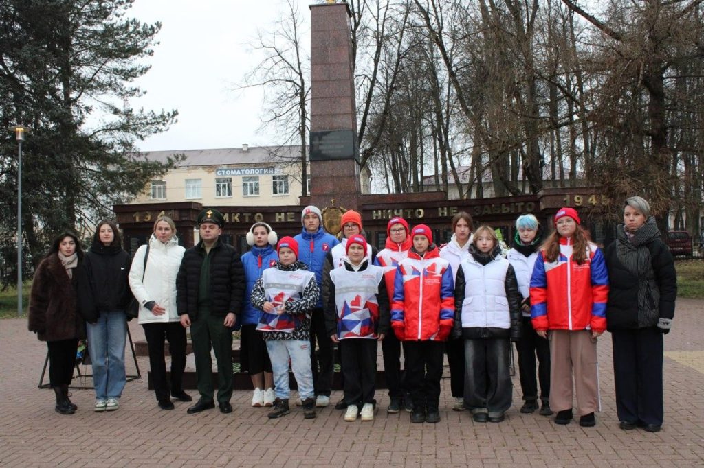 Кроме наших добровольцев, присутствовали активисты «Молодой Гвардии» и Движения Первых. Они заслушали речи, посвящённые подвигам соотечественников, и почтили память павших минутой молчания и возложением цветов к Вечному огню. После этого ребята пришли в Молодёжный центр, где председатель ассоциации ветеранов специальной военной операции в округе Юрий Лысенков провёл для них встречу.