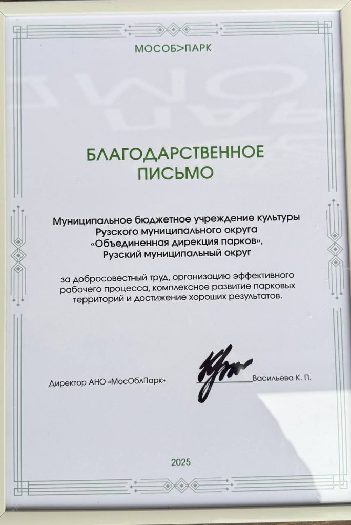 Стоит также подчеркнуть, что ПКиО «Городок» по итогам рейтинга 2024-2025 годов вошёл в десятку лучших парков Московской области и был награжден благодарственным письмом», – написал Александр Анатольевич.