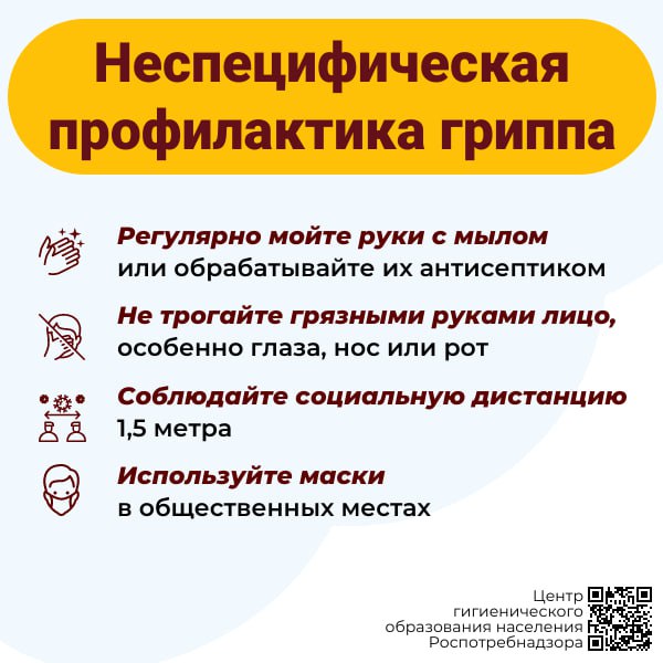 Одинцовский территориальный отдел Управления Роспотребнадзора по Московской области в целях реализации коммуникационной стратегии «Санпросвет» федерального проекта «Санитарный щит страны – безопасность для здоровья (предупреждение, выявление, реагирование)» информирует граждан о профилактике гриппа и ОРВИ.
