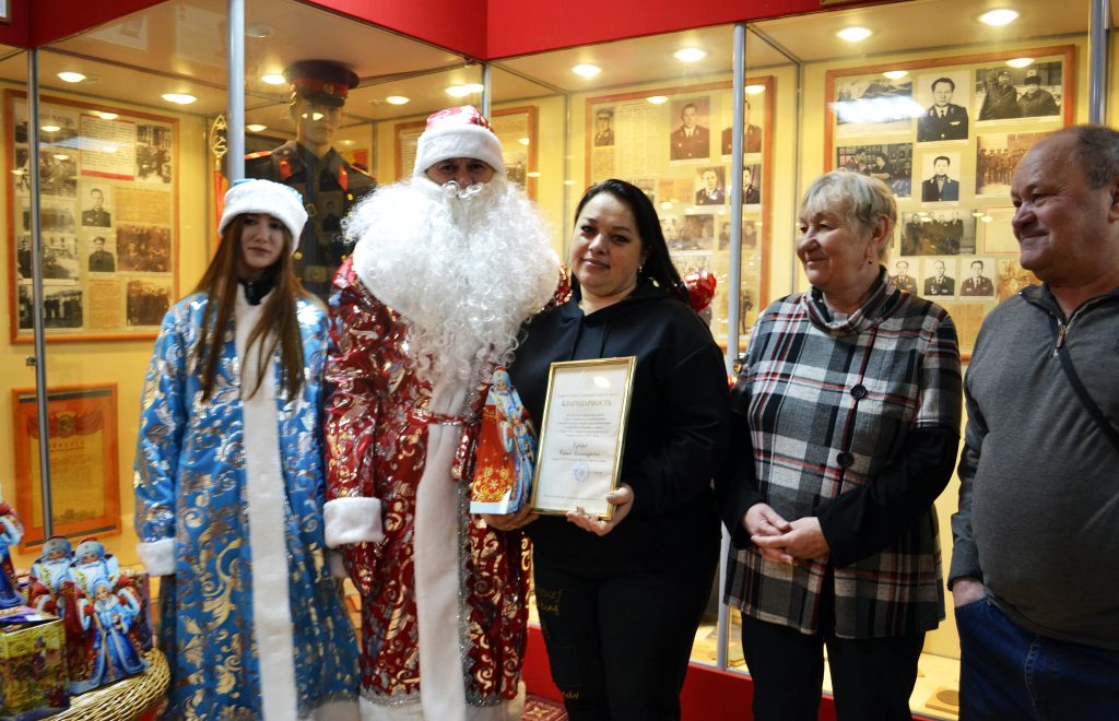 Акция «Полицейский Дед Мороз» прошла в музее истории Рузской милиции. Собравшихся поздравила председатель совета ветеранов подполковник внутренней службы в отставке Елена Сковердяк. Роли Деда Мороза и Снегурочки исполнили майор полиции в отставке Евгений Вершинин и его дочь. Они вручили сладкие подарки. Оксане Суворовой, супруге ветерана ОМВД, майора полиции в отставке Сергея Суворова, участвовавшего в специальной военной операции, была вручена благодарность главы Рузского муниципального округа за многолетнюю безупречную службу в органах внутренних дел.