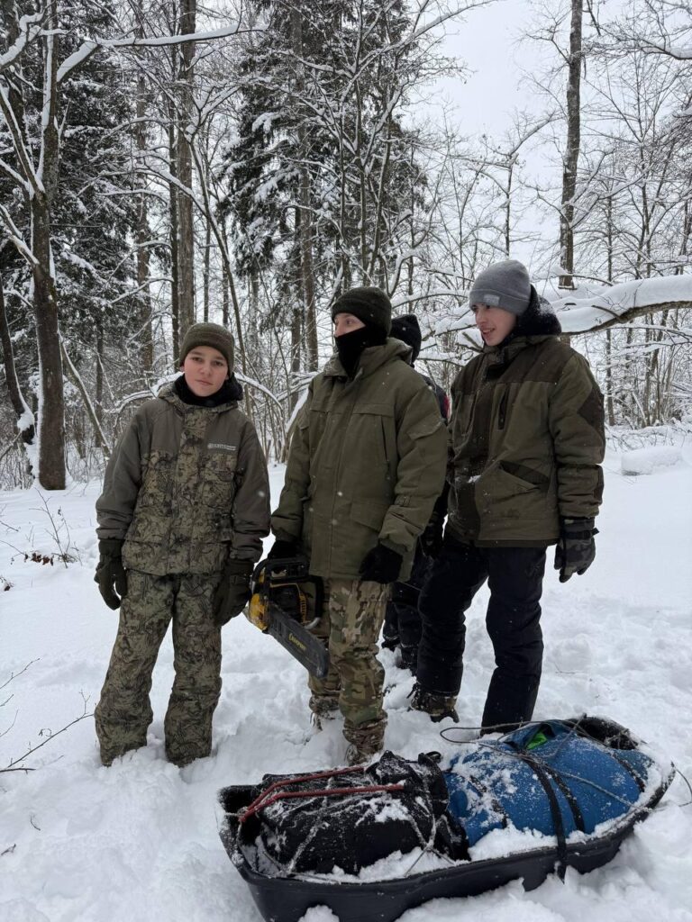 Для ребят это был первый зимний выход. Летом было проще, а сейчас, когда температура опускается до -10 градусов, всё стало намного серьёзнее.В то время, когда многие даже не выходили на улицу в праздники, юнармейцы готовили пищу, отрабатывали навыки обустройства зимнего лагеря, заготавливали дрова, а также учились безопасно передвигаться по лесу в тёмное время суток.