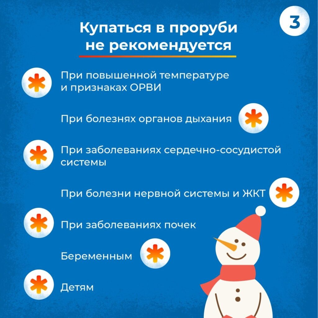 Погружение в ледяную воду — серьезная нагрузка для организма. Кроме того, окунаться следует только в специально оборудованных купелях!