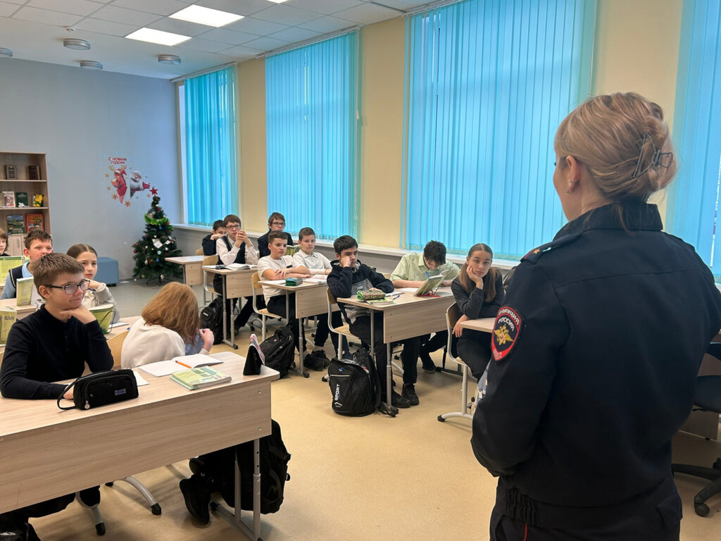 Сотрудница полиции проинформировала школьников о том, что несовершеннолетним запрещено использовать пиротехнические изделия. Особенно осторожными нужно быть вблизи водоёмов, запрещается выходить на тонкий лёд. Зимой также надо быть предельно внимательными, проходя под крышами домов – существует вероятность схождения снега и падения сосулек. Еще одна опасность, которая может подстерегать людей зимой – катание с крутых горок на санках и «ватрушках», а также рядом с проезжей частью.