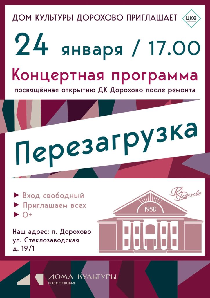 Дом культуры «Дорохово» с радостью объявляет о значимом событии — открытии обновлённого ДК после ремонта. В честь этого знаменательного дня для вас подготовили концертную программу «Перезагрузка».