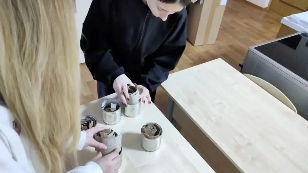 Ребята раскладывают собранное по коробкам и составляют описи, подготавливая партию к отправке бойцам. А ещё в свое свободное время волонтёры плетут маскировочные сети и изготавливают окопные свечи. И сети, и свечи обязательно помогут солдатам выполнять все поставленные задачи.