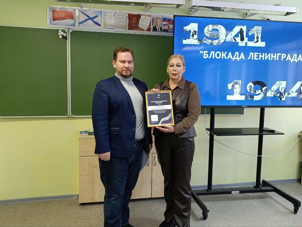 Также поговорили о роли единства народа и взаимопомощи в те тяжелые годы. Один из учащихся прочитал стихи, посвящённые блокаде. В конце встречи Олеся Юмашева вручила благодарственное письмо лектору, преподавателю истории Максиму Рогожину, за активное участие в патриотическом воспитании молодёжи и сохранении исторической памяти.