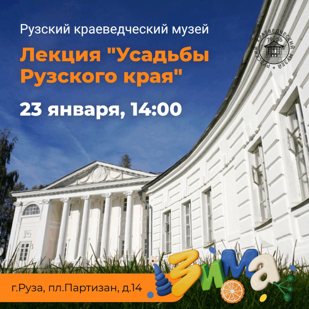 23 января Рузский краеведческий музей приглашает на лекцию «Усадьбы Рузского края». Начало в 14 часов.