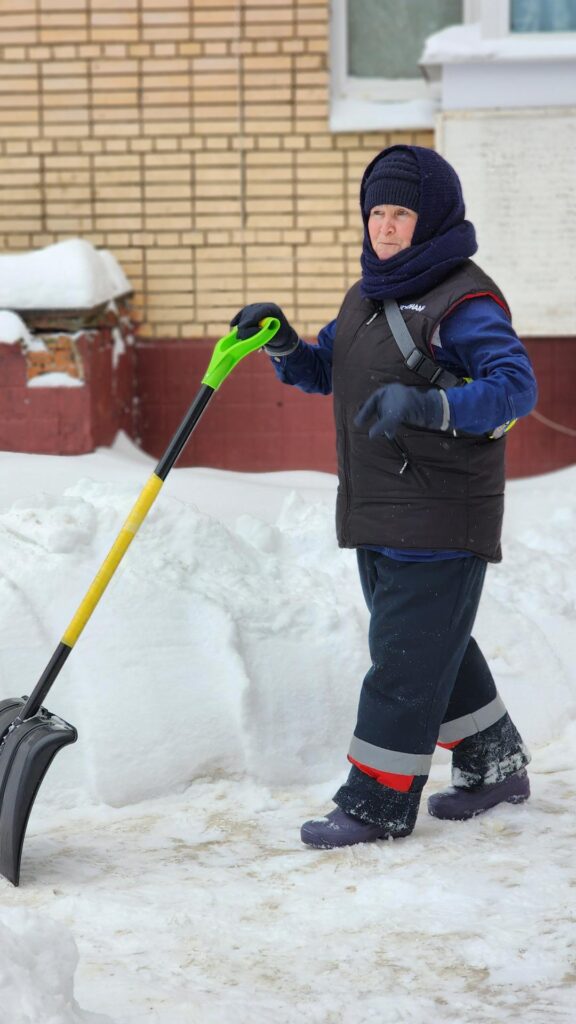 Но 65-летняя коммунальщица Раиса Ягодкина отмечает, что для них с напарницами это обычный рабочий день — уже 10 зим они трудятся со снеговой лопатой в руках. Говорит, русские — значит привыкшие к суровым зимам. Сейчас их задача — чистить дворы, тропинки и детские площадки.