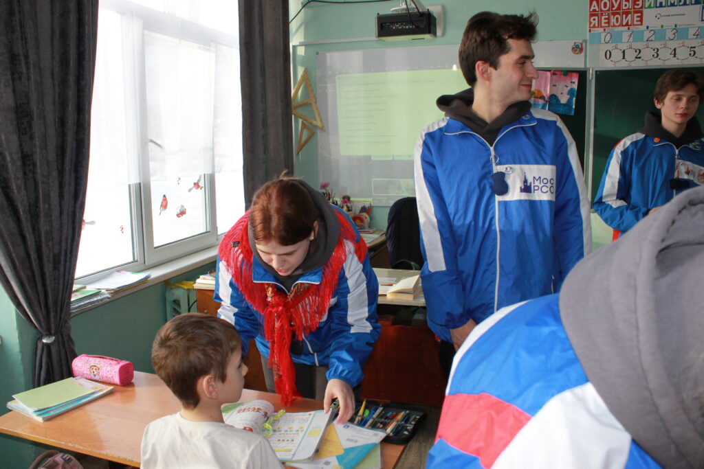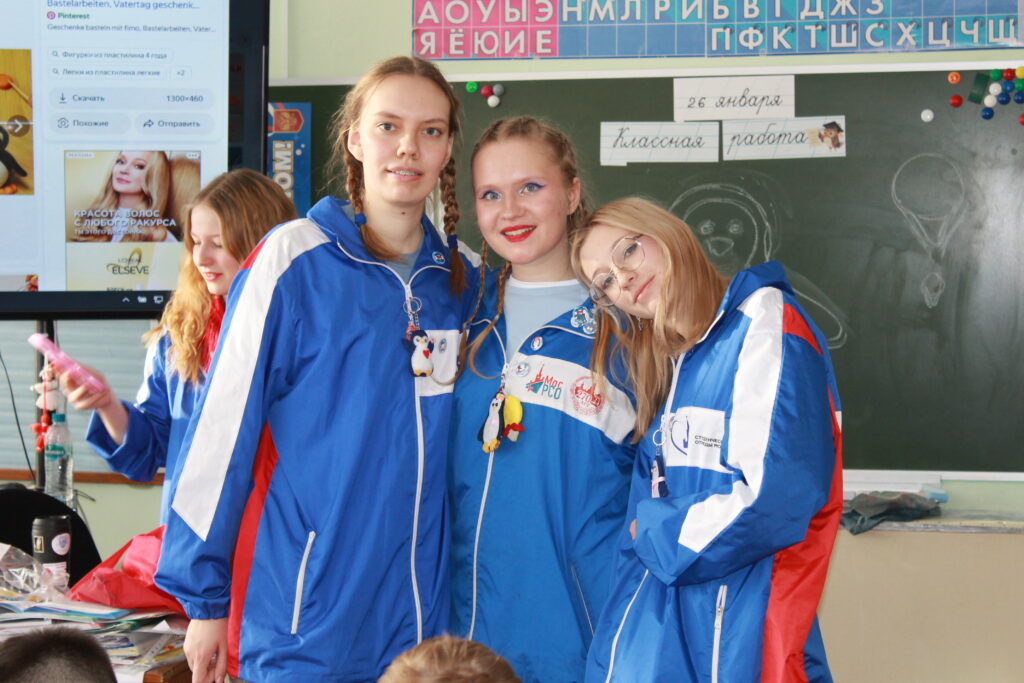 Участники Всероссийской патриотической акции «Снежный десант» посетили Космодемьянскую школу, где провели занятия для учеников шестых классов.