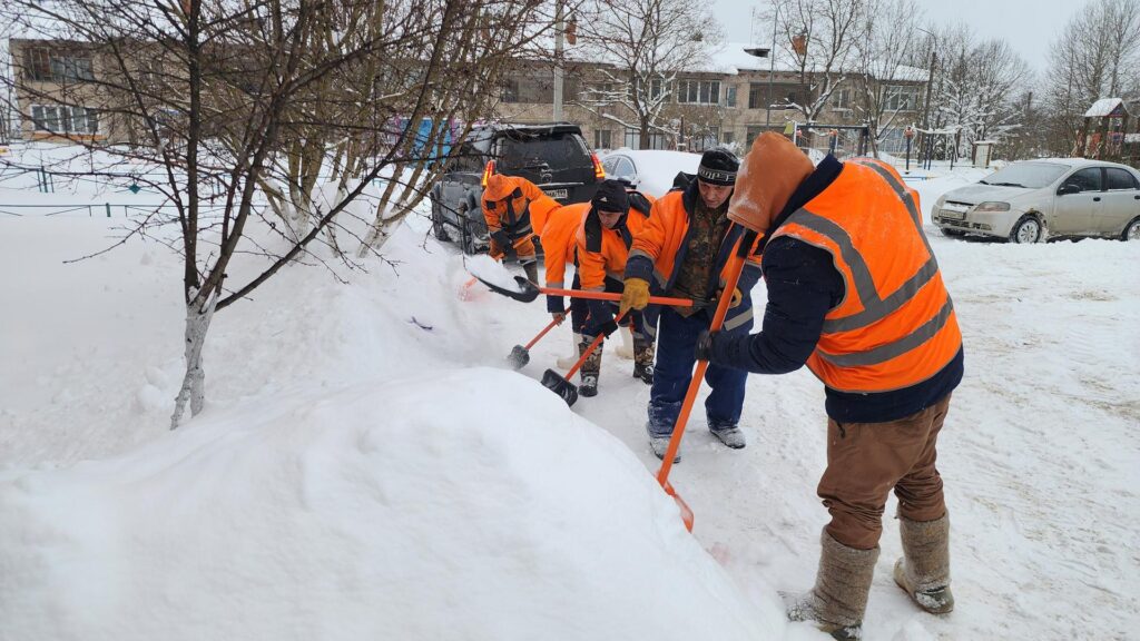 В посёлках и деревнях Рузского муниципального округа продолжают борьбу с последствиями снегопада.
