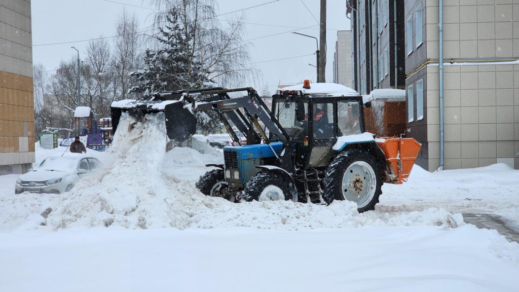 Коммунальщики Рузы продолжают чистить городские дворы. После второй волны снегопада специалисты заново расчищают пешеходные зоны, парковки и автомобильные дороги, формируя собранный снег в большие кучи. Но залежаться им не позволяют — всё сразу вывозят.