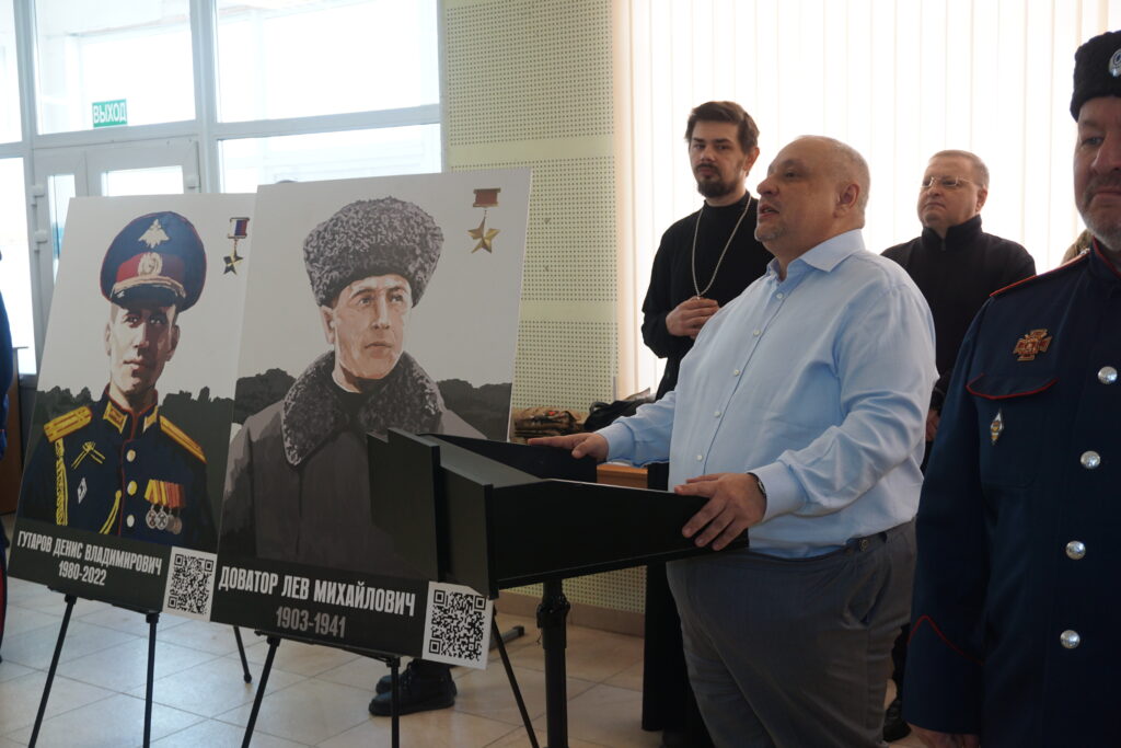 В кадетском корпусе в Брикете появились настенные портреты Льва Доватора и Дениса Гутарова