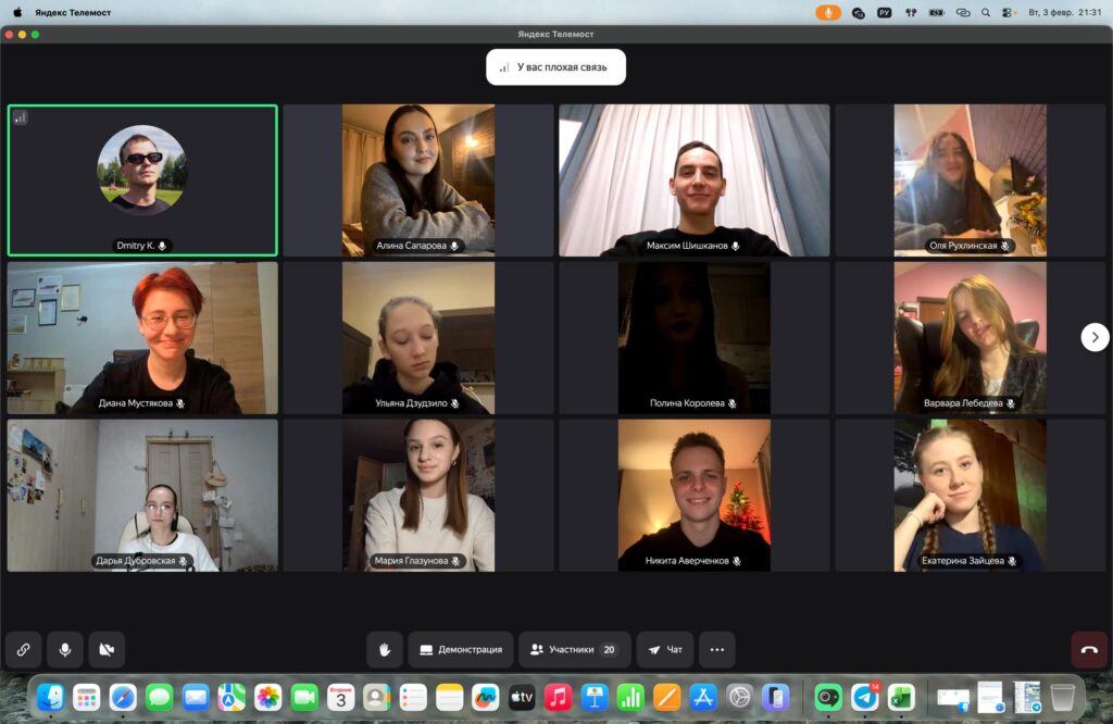 С ребятами поговорили о форуме, о занятиях, о приглашённых спикерах, что их ждёт в рамках выпускного экзамена. Участники проекта рассказали, как связаны с «Будь в теме!» и добровольчеством, кем работают, где учатся, о своих интересах и впечатлениях.
