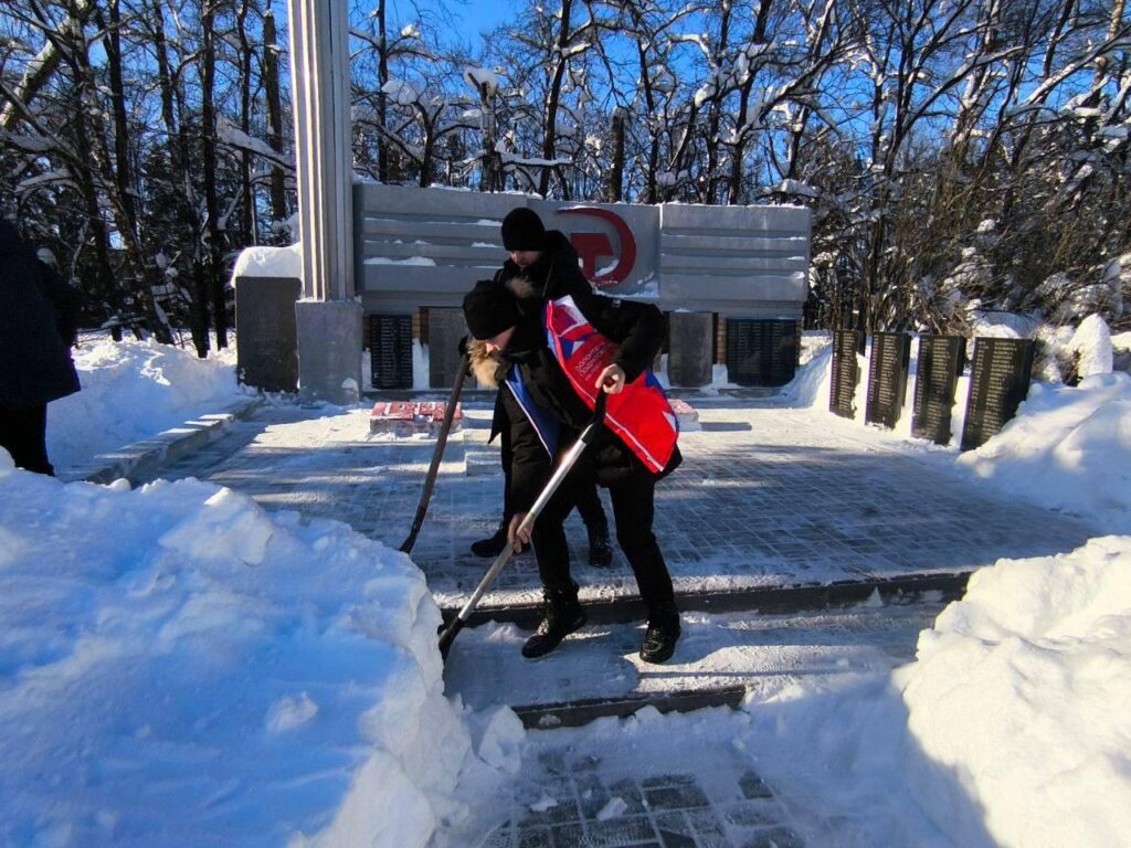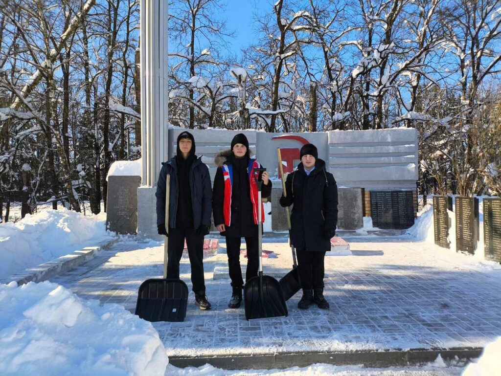 Волонтёры из Космодемьянской школы очистили от снега братскую могилу