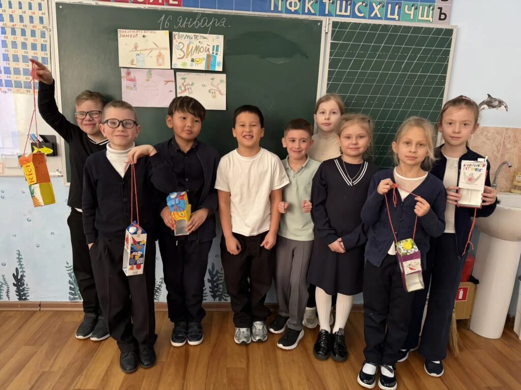 Практическая часть занятия не закончилась в стенах школы. Ребята вместе с педагогом развесили кормушки в разных районах города и наполнили их пшеном, создав для птиц настоящие «столовые». Теперь пернатые гости смогут найти пропитание даже в холодное время года.