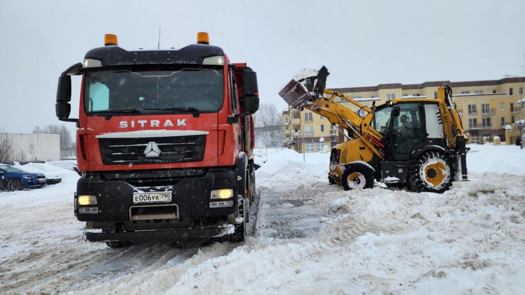 Коммунальные тракторы и КамАЗы активно работают на территории жилищного комплекса «Берёзки». Специалисты с помощью тяжёлой техники наводят порядок на местных парковках. Работают и вручную — лопатами расчищают пешеходные зоны.