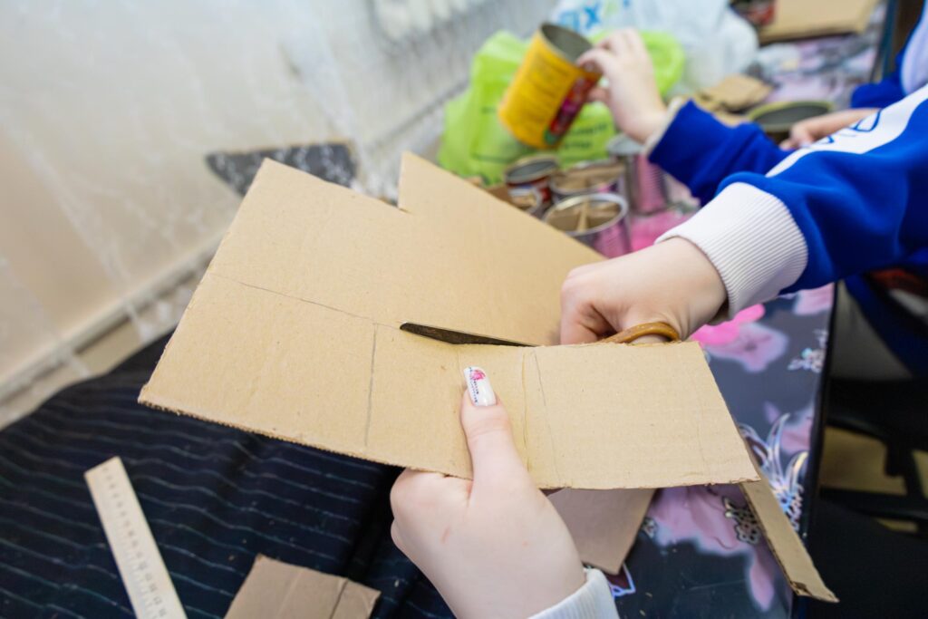 Опытные добровольцы провели для молодых инструктаж, рассказали о материалах и порядке изготовления, какие правила безопасности необходимо соблюдать. Волонтёры нарезали картон, засовывали его в банки и заливали готовые основы парафином, который заранее растопили.