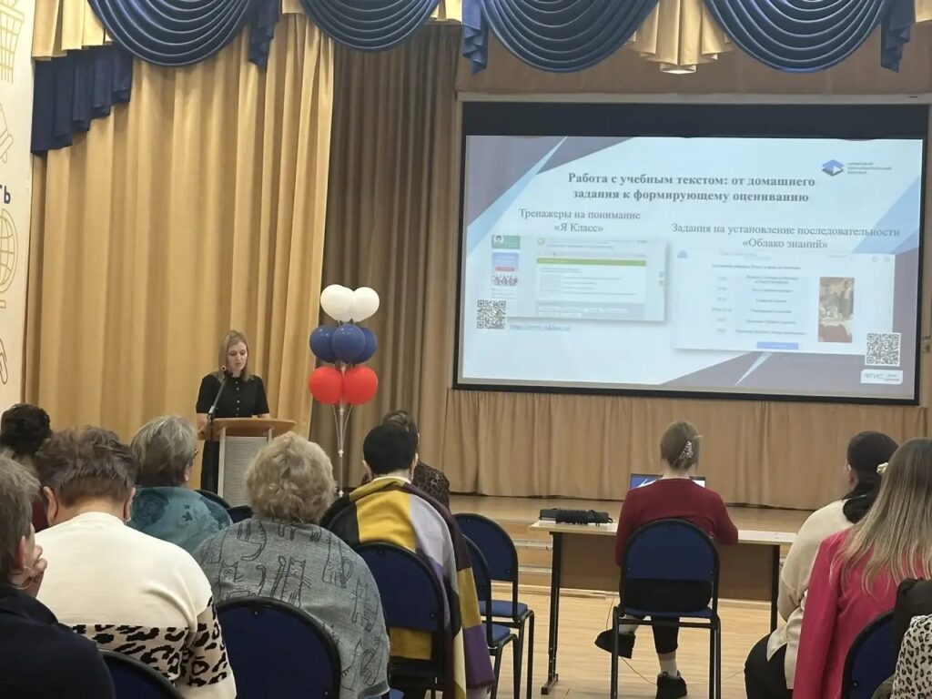 Директор школы Олеся Александровна Юмашева поприветствовала всех участников и ознакомила с программой семинара. Мероприятие получилось насыщенным и практико‑ориентированным. Внедрение цифрового образовательного контента открывает новые возможности для улучшения качества преподавания и повышения уровня подготовки выпускников школ.