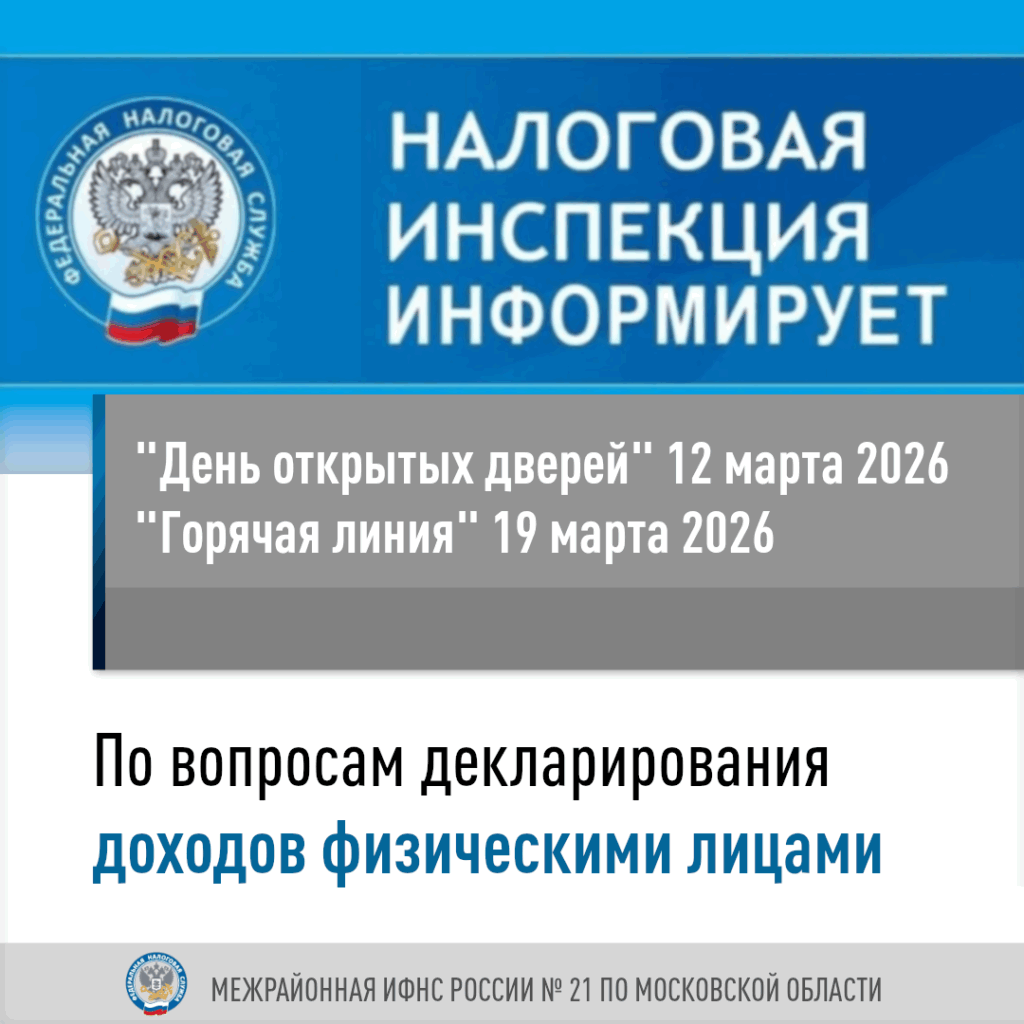 В Межрайонной ИФНС России №21 по Московской области пройдут День открытых дверей и «Горячая линия» по вопросам декларирования доходов физическими лицами.
