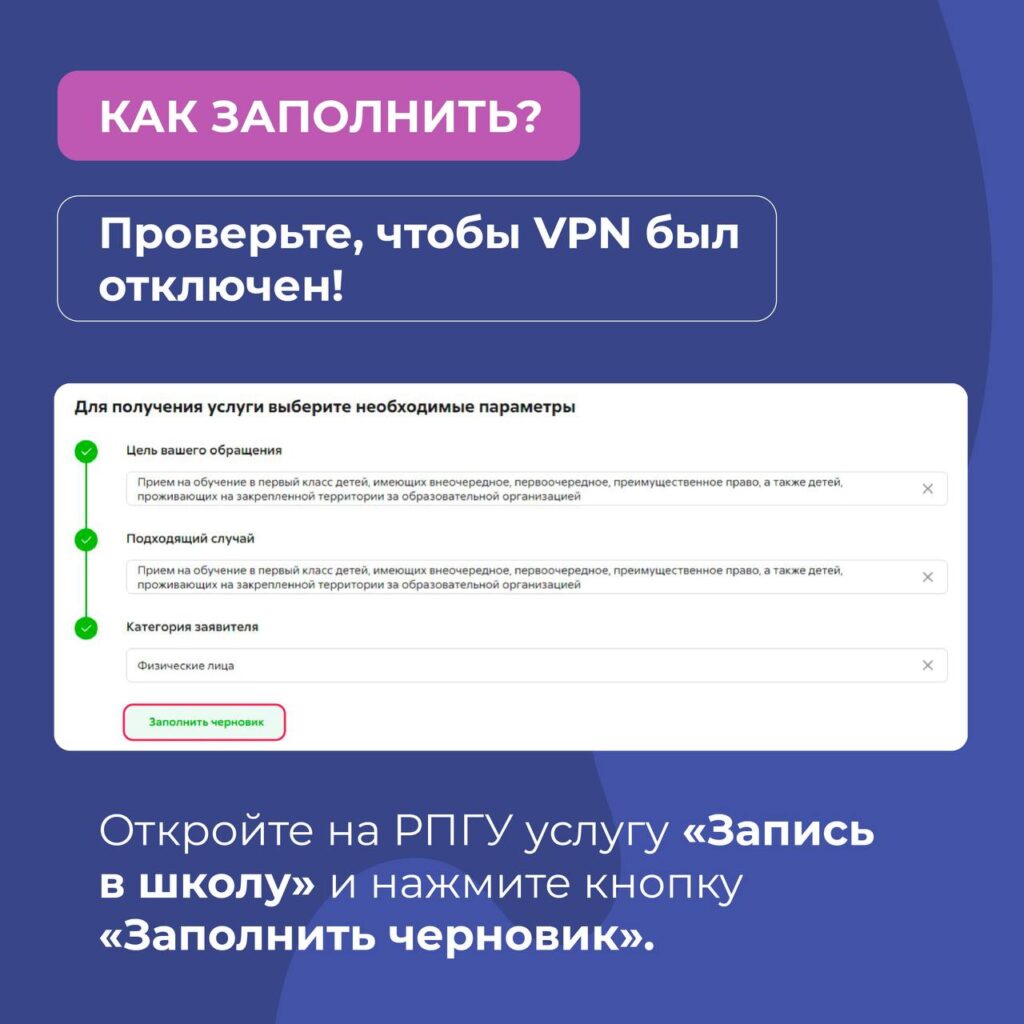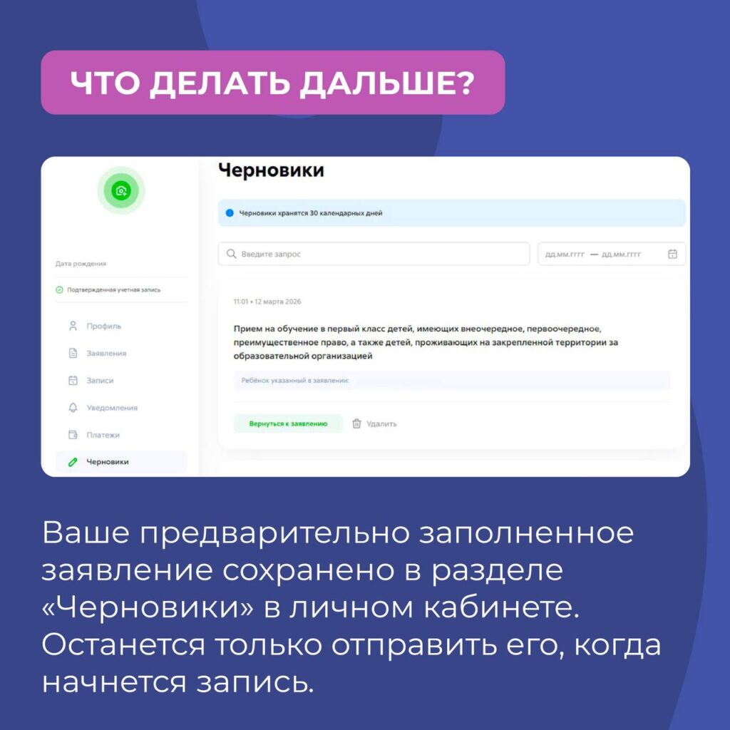 Теперь для записи в первый класс можно сначала подготовить черновик заявления